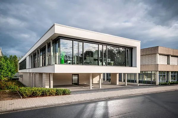 Die neue Gebäudehülle wurde von den ortsansässigen Architekten Wellie + Partner entworfen und geplant. Für die Inneneinrichtung zeichnet Sabine Keggenhoff vom Büro Keggenhoff + Partner verantwortlich. Im gesamten Neubau wurde Wert auf Kommunikationsorte sowie eine angenehme Arbeitsatmosphäre gelegt. Bodentiefe Glasfenster unterstützen diese Offenheit. Eine zeitlose und wertbeständige Architektur, die auch die hochwertigen Produkte des Unternehmens widerspiegeln, war die Vorgabe der Bauherren. Laut Unternehmensmeldung wurden neue Kommunikationsorte für einen schnellen internen Austausch geschaffen, um die Interaktion der Mitarbeiter zu fördern. Dafür sind auch im Außenbereich neue Sitzgelegenheiten gestaltet worden, die sowohl Ruhe als auch Gespräche in angenehmer Atmosphäre zulassen.