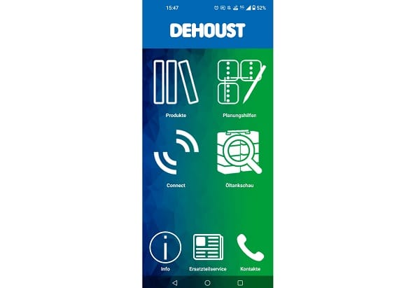 Dehoust bietet ein umfangreiches Produktportfolio. Der Behälterbau, mit dem sich das Unternehmen einst etabliert hat, gehört heute ebenso zum Angebot, wie Systeme zur Grau- und Regenwasseraufbereitung oder Lagerbehälter aus Kunststoff. Einen Überblick bietet die App dank Produktlisten, die sich sowohl nach Anwendungsbereich, als auch historisch auflisten lassen. Zudem können sämtliche Ersatz- und Zubehörteile hier eingesehen werden. Weiterhin verfügt die Dehoust-App auch über einen Ersatzteilservice. Sollte die Typenbezeichnung des benötigten Teils nicht bekannt sein oder wichtige Dokumente wie die Bauartzulassung der Heizöltankanlage fehlen, kann ein Foto in der App hochgeladen werden. Anhand der Aufnahme kann der Hersteller das entsprechende Zubehör identifizieren und anbieten.