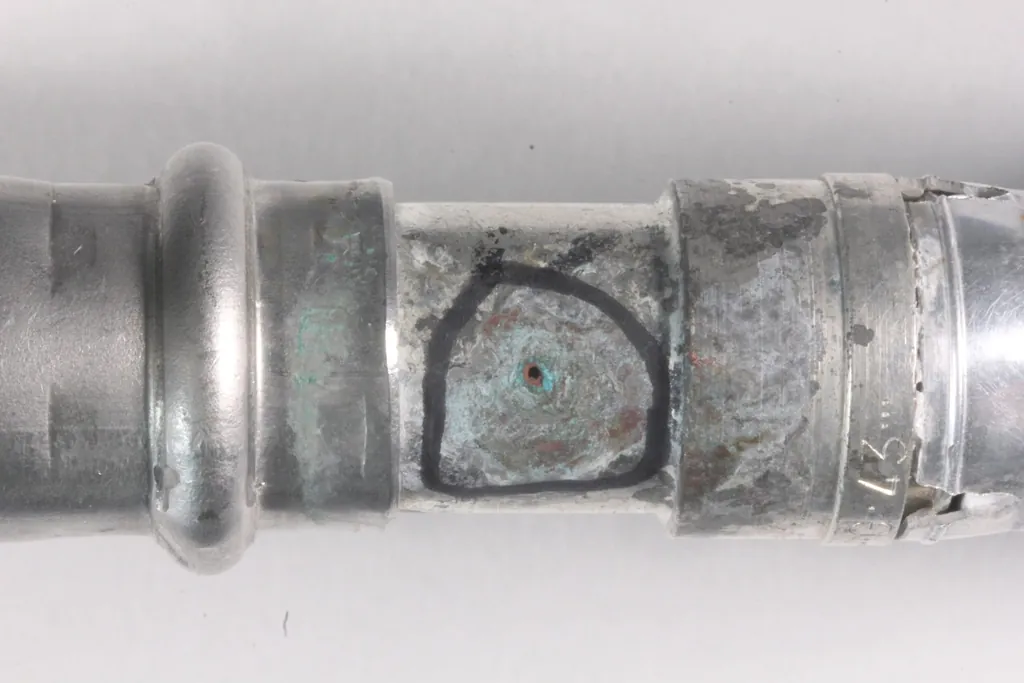 Das Mehrschichtverbundrohr platze aufgrund einer fehlerhaften Produktion. – © DEKRA e. V. Stuttgart