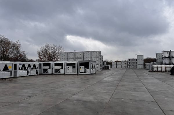 Mit rund 4.000 Geräten ist in Gelsenkirchen eine breite Palette hochwertiger Anlagen der Heizungs-, Klima- und Lüftungstechnik ständig verfügbar. Darunter befinden sich Wärmepumpen, Kühltürme, Chiller, Rooftop-Geräte, und viele weitere Module wie Mietkältemaschinen, Air Handling Units (AHU), Split-Systeme, Luft-/Wasser-Wärmetauscher, Heizzentralen, Luftreiniger sowie Be- und Entfeuchter. Darüber hinaus dient das Depot als Zwischenlager für Neugeräte.