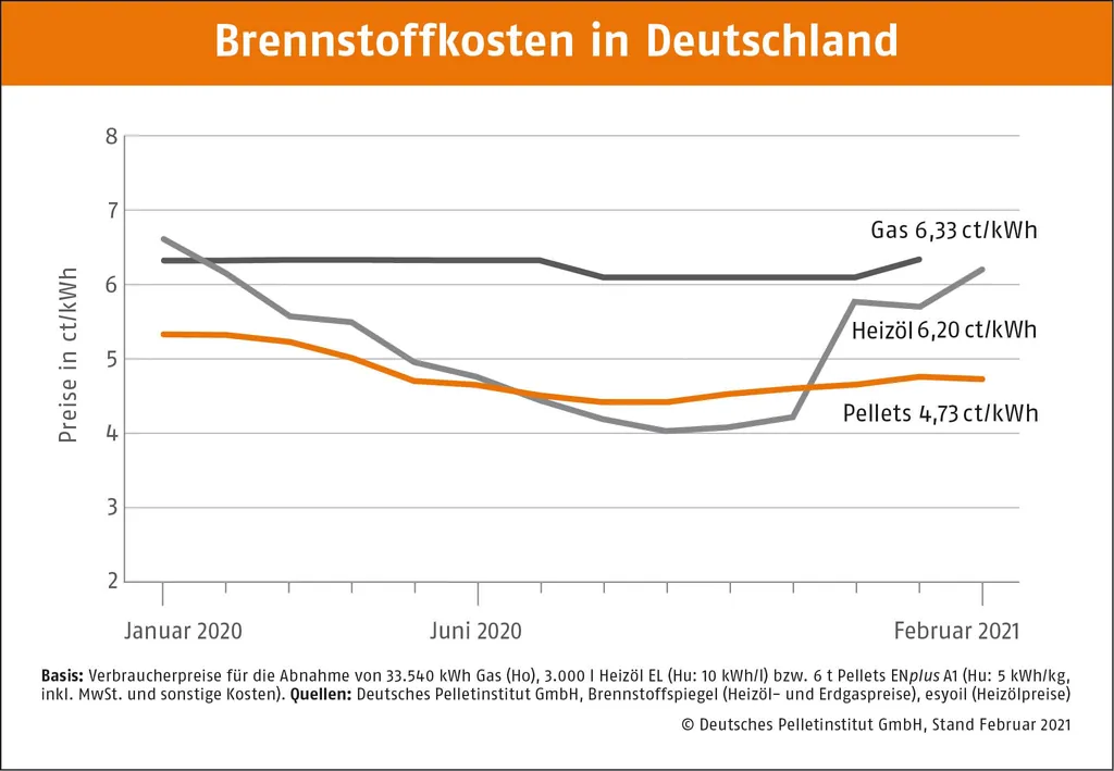 Brennstoffkosten in Deutschland. – © Deutsches Pelletinstitut