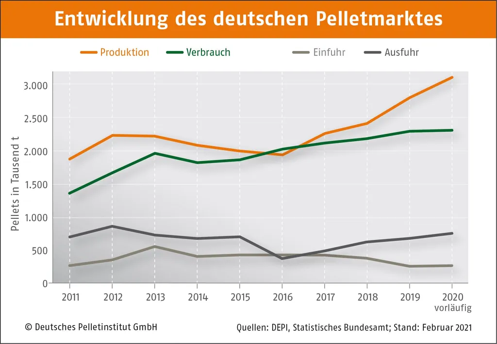 Entwicklung des deutschen Pelletmarktes. – © Deutsches Pelletinstitut