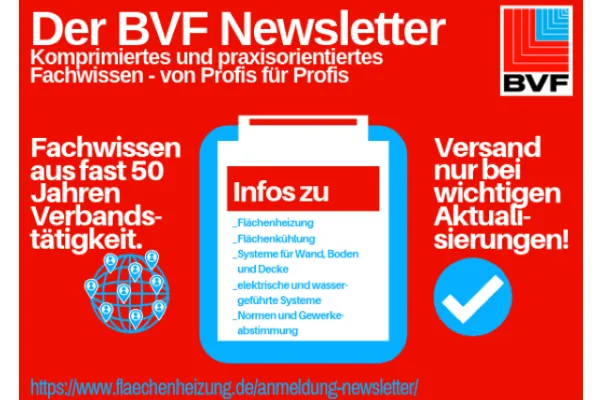 Der Newsletter kann auf folgender Webseite des BVF e. V. abonniert werden: www.flaechenheizung.de/anmeldung-newsletter.