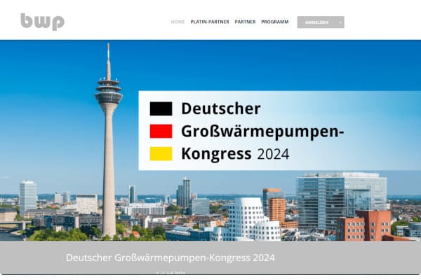 Der deutsche Großwärmepumpen-Kongress 2024 findet am 3. Juli in Düsseldorf statt. – © Screenshot https://bwp.idloom.events/deutscher-grosswaermepumpen-kongress-2024 (Stand 25.06.2024)
