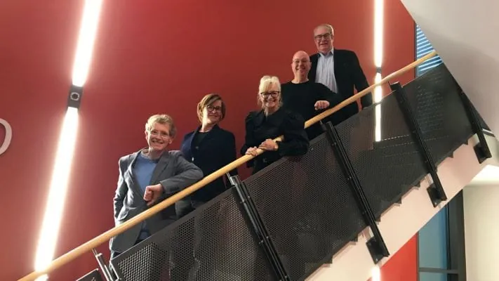 Die Jury des Design Plus Awards, v. l.: Bernhard Heitz (dormakaba), Dr. Sandra Hofmeister, (Detail), Corinna Kretschmar-Joehnk, (JOI-Design), Lutz Dietzold, (Rat für Formgebung, kein Jurymitglied) und Jens Wischmann (VDS). – © Messe Frankfurt Exhibition GmbH