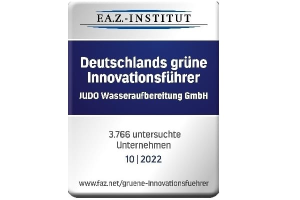 Das F.A.Z.-Institut für Management-, Markt- und Medieninformationen hat der Judo Wasseraufbereitung GmbH das Zertifikat „Deutschlands grüner Innovationsführer“ verliehen. Das Familienunternehmen aus Winnenden wurde bei der Studie für seine zahlreichen Patenten und dem Nachhaltigkeitsgedanken ausgezeichnet.
