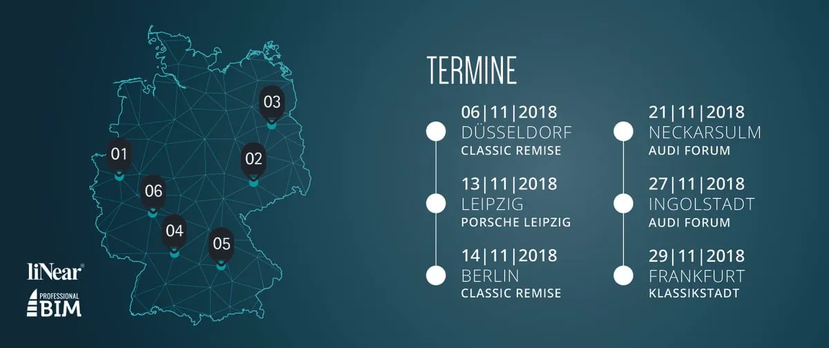 Die Entscheidung zur etwas anders gestalteten Roadshow hat liNear passend zur neuen Softwareversion 19 getroffen. Anstatt viele kleine Veranstaltungen abzuhalten, wurden sechs große Veranstaltungen organisiert, die unter dem Motto „Software meets Automotive“ stehen.