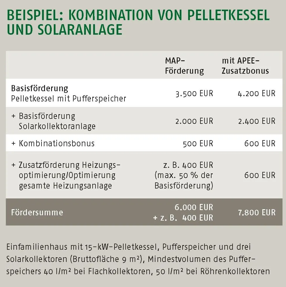 Mit dem APEE-Zusatzbonus sind es sogar mindestens 4.800 Euro. Den Durchblick über die vielfältigen Fördermöglichkeiten bietet die, Ende April veröffentlichte, Förderfibel des Deutschen Pelletinstituts (DEPI).