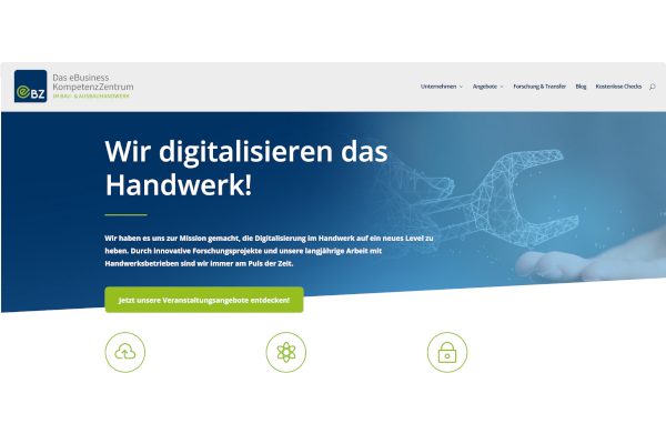 Dank Low-Code-Ansätzen und der Integration standardisierter Softwarelösungen können Unternehmen ihre Prozesse selbst modellieren, automatisieren und optimieren. Das eBusiness-KompetenzZentrumg gGmbH informiert zu ersten Schritten und gibt Unterstützung bei Fragen. – © Screenshot https://ebusiness-kompetenzzentrum.de (Stand 15.01.2025)