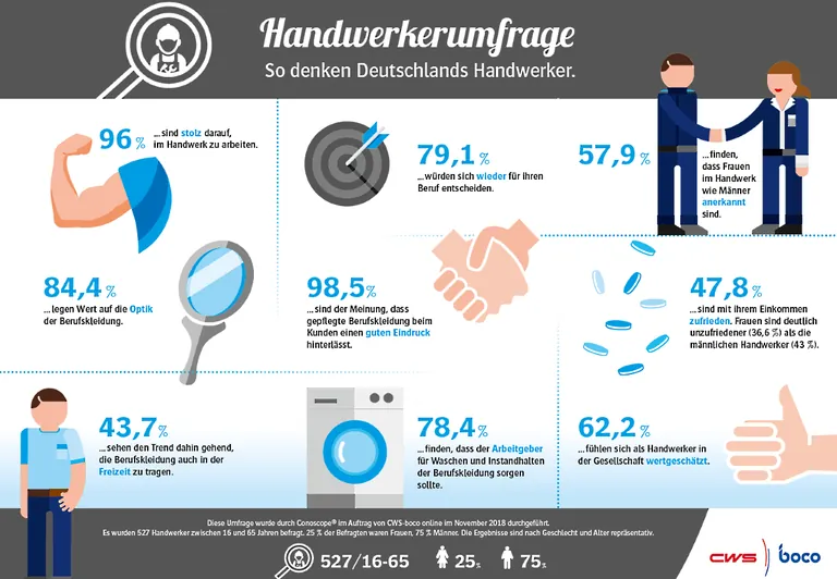 Conoscope führte im November 2018 im Auftrag von CWS-boco online eine Umfrage zum Thema Wertschätzung im Handwerk und Arbeitskleidung durch.
