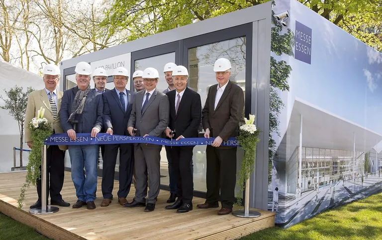 In der Messe Essen ist der Startschuss für die Modernisierung gefallen. Gemeinsam eröffneten Essens Oberbürgermeister Thomas Kufen und Messechef Oliver P. Kuhrt den neuen Info-Pavillon als Symbol für den Bauauftakt. Damit haben die Arbeiten an der Neuen Messe Essen offiziell begonnen, erklärt die Messe. In der ersten Bauphase entsteht im Eingangsbereich Ost ein 2.000 m² großes Glasfoyer und damit die neue Visitenkarte der Messe Essen. Im Inneren des Geländes liege der Fokus auf der klaren, eingeschossigen Strukturierung der Hallen und auf der technischen Modernisierung.