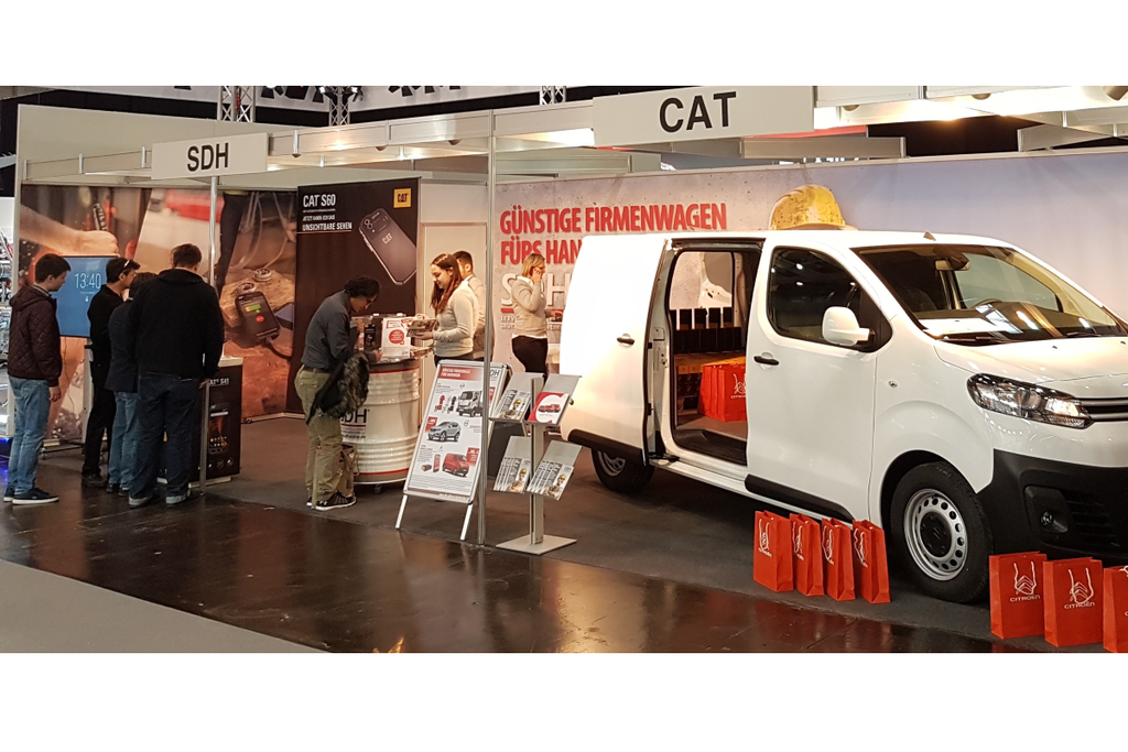 Die SDH – Servicegesellschaft Deutsches Handwerk GmbH präsentiert sich zusammen mit ihren Partnern Peugeot Deutschland und Cat Phones auf der ISH, Halle 4.2, Stand B38.