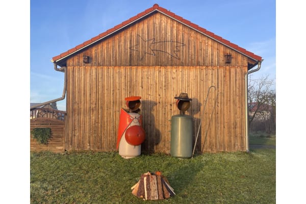 Nicht gleich auf den ersten Blick zu erkennen, sind die Materialien, aus denen diese ganz besondere Krippe in Hohenried gestaltet wurde. Aus ausgebauten Heizungsbauteilen und Schrottmaterialien wurde die Weihnachtskrippe real in Gestalt von Maria, Josef und dem Jesuskind in Szene gesetzt.