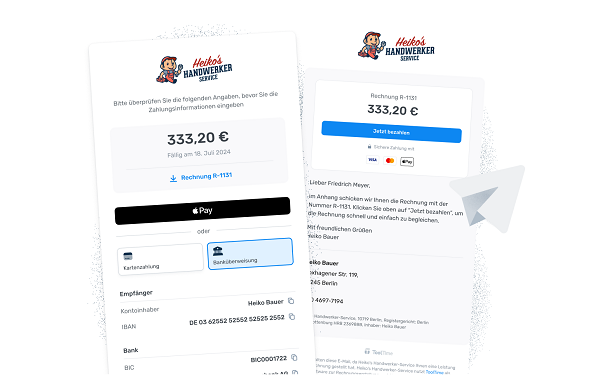 Mit der simplen Anwendung des neuen Features lassen sich finanzielle Abläufe in den Betrieben optimieren. ToolTime erfasst eingehende Zahlungen automatisch und markiert die Rechnung als bezahlt. Kommt kein Geld an, können Nutzer Mahnungen mit einem Klick versenden. Rückerstattungen wickelt das Tool über die ursprüngliche Zahlungsmethode ab.