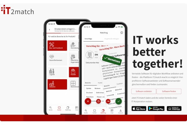 Über 350 Software-Hersteller haben bei IT2match bereits umfangreiche Informationen zu den Funktionalitäten ihrer Software hinterlegt. Das ist die Voraussetzung dafür, dass nach Beantwortung des Fragenkatalogs dann auch konkrete Software-Lösungen vorgeschlagen werden können.