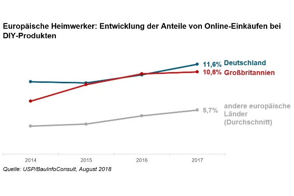 In der vierteljährlichen Messung des Heimwerkerverhaltens, die von der USP-Gruppe seit 2014 in mehreren europäischen Ländern erhoben wird, fällt die stärkere Affinität der deutschen und englischen Verbraucher zur Onlinebestellung von Heimwerkerbedarf schon seit Längerem auf. Die starke Performanz der Online-Anbieter hängt natürlich auch damit zusammen, dass die Verbraucher in diesen Ländern auch bei den meisten anderen Anschaffungen als DIY-Produkten immer häufiger per Mausklick bestellen.