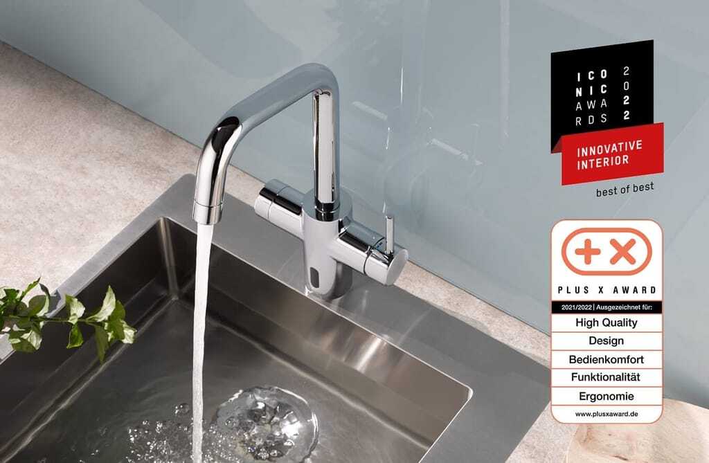 Doppelter Grund zur Freude: Die bereits mit dem Innovation Award prämierte Küchenarmatur Grandis E hat jetzt in Kombination mit dem Schell Wassermanagement-System SWS weitere Awards gewonnen. Das Produkt wurde mit dem Plus X Award und den Iconic Awards gekürt.