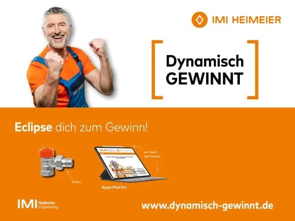 Der Hauptpreis ist ein Apple iPad Pro inklusive Tastatur und Apple Pencil. Außerdem werden eine hochwertige Leuchte sowie ein Raumbelüfter und 700 Sofortgewinne verlost. Gleichzeitig finden Besucher auf der Seite alle wichtigen Informationen zum Produktprogramm mit automatischer Durchflussregelung des Herstellers. Das Thermostat-Ventilunterteil Eclipse und der Fußboden‑Heizkreisverteiler Dynacon Eclipse der Marke Heimeier mit patentierter AFC‑Technologie (Automatic Flow Control) begrenzen den Durchfluss unabhängig vom anliegenden Druck auf den zuvor eingestellten Maximalwert. Somit erlauben die Produkte einen schnellen und zuverlässigen hydraulischen Abgleich ohne komplexe Berechnungen oder den Einsatz von Differenzdruckreglern. Das gilt auch für den Teillastbetrieb, da durch geschlossene Ventile in anderen Räumen oder die morgendliche Aufheizphase hervorgerufene Druckschwankungen im Netz keinen Einfluss auf das Regelverhalten des mit AFC-Technologie ausgestatteten Ventileinsatzes haben. Die automatische Durchflussregelung sorgt somit unter allen Betriebsbedingungen für ein hydraulisch abgeglichenes System und eine optimale Wärmeverteilung in der gesamten Anlage.
