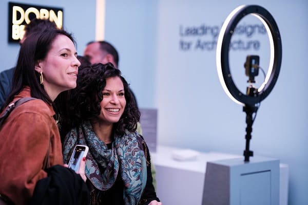 Ein Spiel aus Licht und Wasser boten auch eine interaktive Installation, die Dornbracht gemeinsam mit den Kreativagenturen Meiré und Meiré und Vitamin Arte realisiert hat. Direkt im Eingang konnten Gäste ein Video-Portrait von sich selbst erstellen, bei dem Virtualität und Realität miteinander verschmelzt wurden.