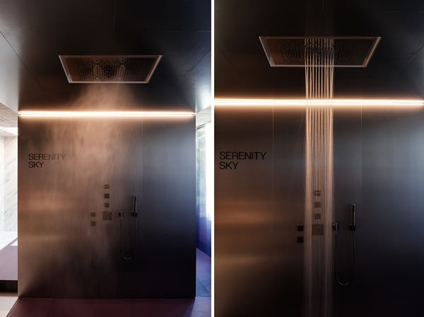 Beim Regenpaneel Serenity Sky, dessen Produktdesign von Sieger Design stammt, veranschaulichten fünf unterschiedliche Strahlarten, wie belebende Glücksmomente im Alltag integriert werden können. Aquahalo beeindruckte mit seinem Design, das von Michael Neumayr nach dem Vorbild eines klassizistischen Kristallkronleuchters gestaltet wurde. Dass die Erlebnisdusche mit drei Strahlarten zum Highlight in jedem Bad werden kann, wurde im Showroom deutlich.