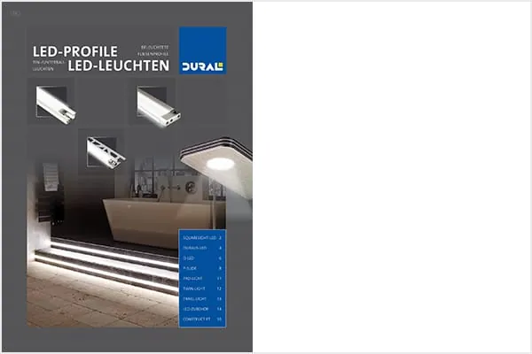Mit einer 16-seitigen Broschüre veranschaulicht Dural das ganze Spektrum seiner LED-Profile für Kanten und Flächen sowie LED-Ein- und Unterbauleuchten.