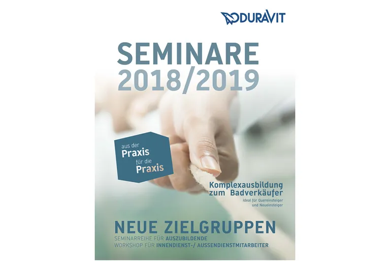 Duravit reagiert auf zahlreiche Nachfragen von Kunden mit der Änderung des Erscheinungszeitraums der Seminarbroschüre. Diese erscheint jetzt kalenderjahrübergreifend und ist ab sofort mit allen Terminen bis Herbst 2019 erhältlich.
