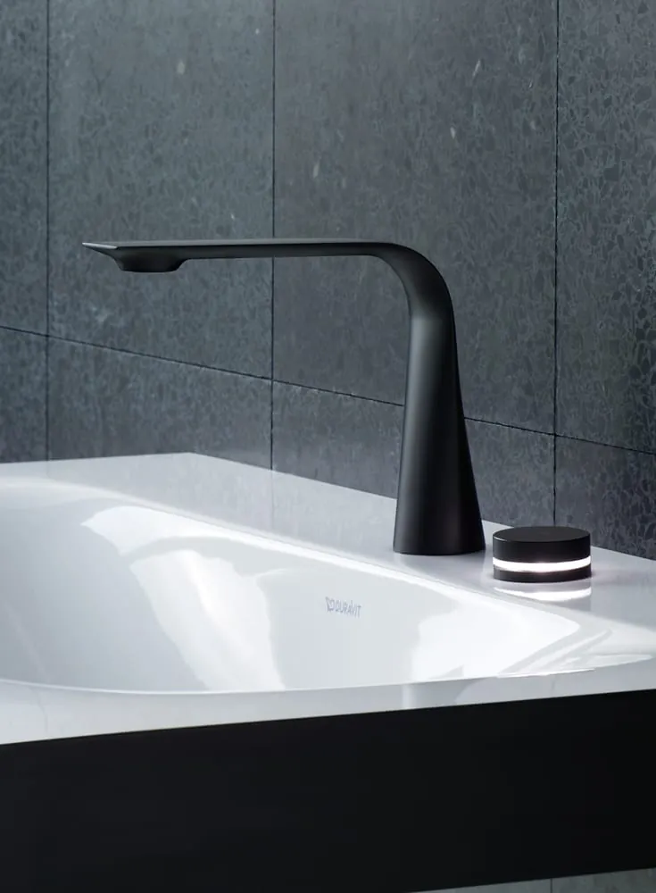Entstanden ist die Armaturenlinie in Zusammenarbeit mit Matteo Thun und Antonio Rodriguez. „Ein dynamisch fließender Übergang verbindet die zylindrische Grundform mit dem superflachen Auslauf“, erklärt der Anbieter. D.1 überzeugt mit unverkennbarer Eigenständigkeit durch klare Konturen und Oberflächen in Chrom oder Schwarz Matt. In Form und Farbe harmoniert D.1 mit der ebenfalls prämierten Designbadserie Viu/XViu und den Accessoires Starck T, heißt es.