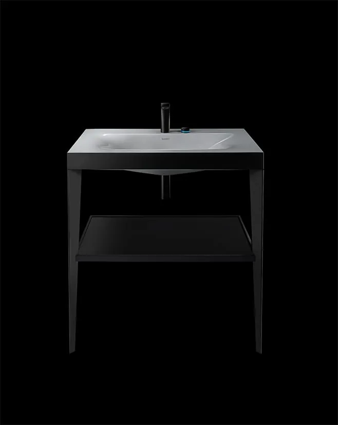 Die Keramikserie Viu und das Möbelprogramm XViu stehen für zukunftweisendes Design. Dabei wollen Duravit und sieger design „post-industrielle Eleganz durch das Zusammenspiel weicher, organischer Formen und präziser Geometrie“ schaffen. Ein Highlight bildet die Waschplatz-Variante auf Basis der von Duravit patentierten c-bonded Technologie, bei der Keramikbecken und Metallrahmen nahtlos miteinander verbunden sind. Inmitten eines präzise definierten Rechtecks liegt das geschwungene Innenbecken mit abgesetzter Hahnlochbank.