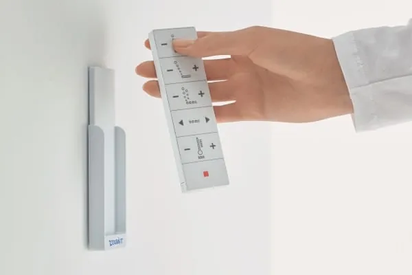 Alle Funktionen der SensoWash® wie Wassertemperatur und -volumen, Sprüh- und Düsenposition werden per Fernbedienung bedient.