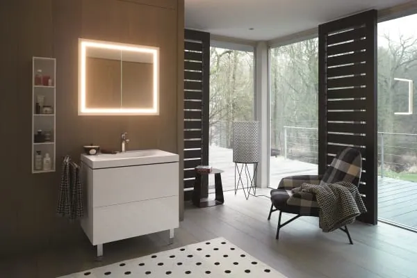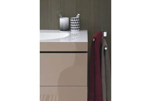 P3 Comforts und das Badmöbel-Sortiment L-Cube bilden ein harmonisches Ensemble. Die große Auswahl an Möbelvarianten und Oberflächen bietet eine große Gestaltungsfreiheit. (Finish: Cappuccino)