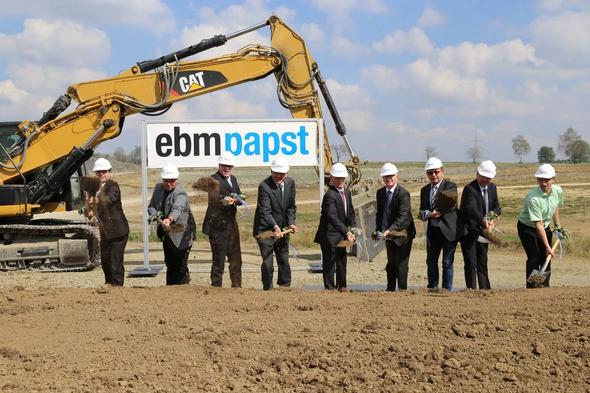 Im Beisein von Ministerpräsident Winfried Kretschmann begann ebm-papst offiziell mit dem Bau seines 38.000 Quadratmeter großen Versandzentrums, nahe des Hollenbacher Werks. Die Inbetriebnahme ist für Ende 2016 geplant.