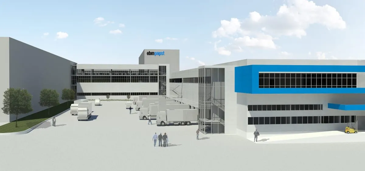 Neben dem Versandzentrum wird ebm-papst Anfang 2016 am Standort Mulfingen auch mit dem Neubau zur Erweiterung der Forschungs- und Verwaltungsbereiche beginnen. In die bestehende Werkslandschaft werden zwei neue Gebäude integriert, die Platz für Büros und neue Mess- und Testeinrichtungen bieten. Hierfür wird der Ventilatorspezialist weitere 30 Millionen Euro investieren.