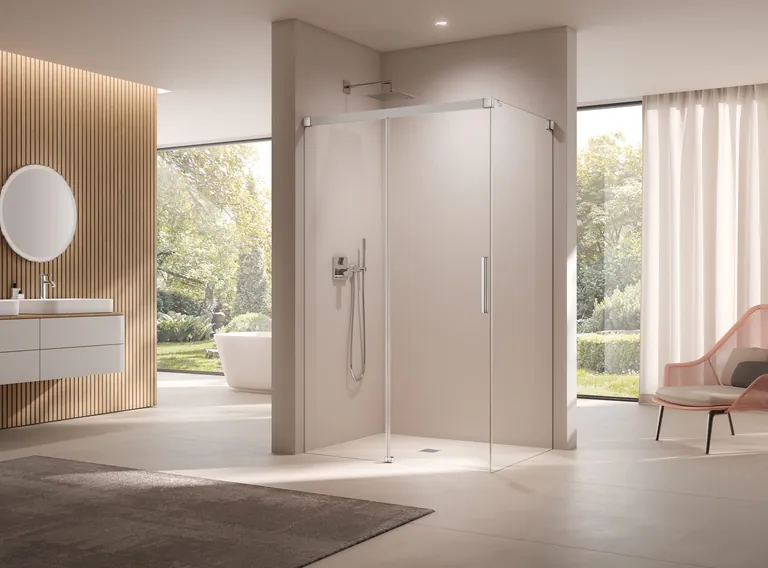 Kermi bietet eine breite Produktpalette mit nahezu großer Variantenvielfalt für jeden Anspruch und für jede Badsituation. Fokusthemen in diesem Jahr ist neben der modernen Beschlag-Duschkabine „Mena“ die Gleit-Tür „Nica“ ohne Wandprofil.