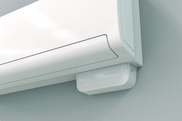 Das Omega Pack 2 All-in-One-Minipumpenpaket passt unter die Inneneinheit eines Klimageräts.
