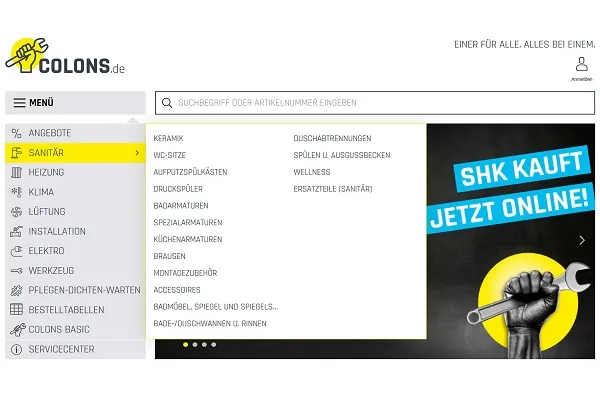 Im Gegensatz zum klassischen Fachgroßhandel liegt beim Online-Shop der Fokus auf der schnellen und unkomplizierten Produktbeschaffung mit schlanken Servicestrukturen. Laut Unternehmensangaben hat der Online-Fachgroßhändler Colons.de einen sehr effektiven Materialeinkauf exklusiv für SHK-Fachhandwerker geschaffen.