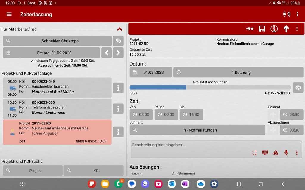 Über die App „Mobile Zeiterfassung“ kann mit Smartphone oder Tablet auf der Baustelle, beim Kundendienst oder im Auto gestempelt werden. Und auch im Büro könnte das Stempeln über den Desktopstempel kaum einfacher sein. Anwender wählen dazu einfach die Tätigkeit, an der sie gerade arbeiten (z. B. Projekte oder auch KDIs) und schon läuft die Arbeitszeit zu dieser Tätigkeit. Die Tätigkeiten werden anhand der Nutzung automatisch aufgelistet und sortiert. Damit wird keine Zeit mehr mit unnötigem Suchen vergeudet.