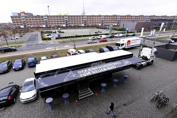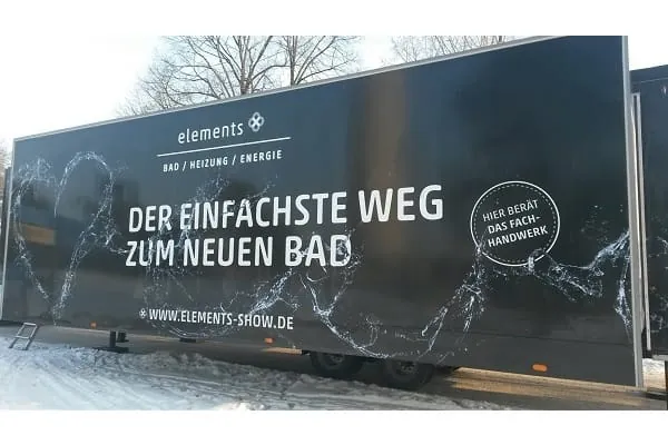 Mit einer Ausstellung des Fachhandwerks tourt ein Elements-Showtruck mit den neuesten Badprodukten durch Deutschland.