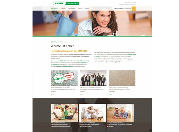 Der Flächenheizungsspezialist Empur hat einen neuen Internetauftritt. Unter www.empur.com findet der Besucher eine gut strukturierte und in allen Facetten zeitgemäße, bedienungsfreundliche Homepage.