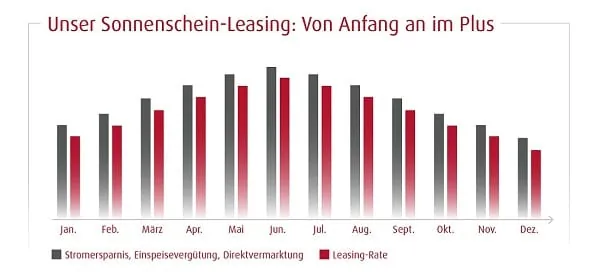 Ein entsprechendes Angebot kommt vom Kölner Leasinganbieter abcfinance. Es nennt sich „Sonnenscheinleasing“. Die Raten bemessen sich am Ertrag und steigen beispielsweise dann, wenn die Sonneneinstrahlung üblicherweise hoch ist. Zudem will abcfinance Wissen um die Förderung und die Besicherung der Anlagen mit einbringen. Ein Netzwerk aus Solarteuren, Steuerberatern und Energieberatern soll das fachliche Know-how liefern, um die reibungslose Arbeit der unterschiedlichen Gewerke zu gewährleisten.
