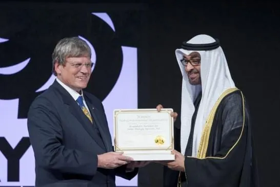 Die Wissenschaftler am Fraunhofer-Institut für Solare Energiesysteme ISE in Freiburg entwickeln Lösungen für die Nutzung erneuerbarer Energien. Dafür wurde das Institut am 20. Januar mit dem Zayed Future Energy Prize 2014 ausgezeichnet. Der Zayed Future Energy Prize ist mit 1,5 Millionen US-Dollar dotiert. Ausschlaggebende Kriterien für die Auswahl der Preisträger sind deren Einfluss auf einen spürbaren industriellen, gesellschaftlichen und ökologischen Wandel, ihre Führungsrolle und Vorbildfunktion sowie die Zukunftsfähigkeit und das Innovationspotenzial der Einrichtung. „Wir freuen uns außerordentlich, dass das Komitee des Zayed Future Energy Prize die über 30-jährige Arbeit des Fraunhofer ISE für eine nachhaltige Energieversorgung auf diese Weise anerkennt“, sagt Prof. Dr. Eicke R. Weber, Leiter des Fraunhofer ISE. „Dieser hochdotierte Preis ermöglicht es uns, Länder, die noch nicht auf dem Weg einer Energiewende sind, mit unserer Forschung zu unterstützen. So können wir damit zum Beispiel von uns konzipierte Energiesystemanalysen und -versorgungsmodelle weiterentwickeln. Sie ermöglichen einen reibungslosen und kosteneffizienten Wandel hin zu einer nachhaltigen Energieversorgung auch für andere Regionen und legen die Basis für technologische Zusammenarbeit.“ Auch für Ausbildungsprogramme soll das Preisgeld genutzt werden. Die Ehrung nahm Prof. Weber auf dem World Future Energy Summit in Abu Dhabi von Scheich Mohammed Bin Zayed Al Nahyan, Kronprinz der Vereinigten Arabischen Emirate, entgegen. Das ISE, mittlerweile das größte europäische Solarforschungsinstitut, war einer der drei Finalisten in der Kategorie Nongovernmental Organization (NGO). Es setzte sich gegen die britische Organisation Practical Action und das US-amerikanische World Resources Institute (WRI) durch. Für das Emirat Abu Dhabi, einem der weltweit größten Energieproduzenten, ist das Thema erneuerbare Energien von großer Bedeutung. Um die Relevanz dieser Verantwortung hervorzuheben, schreibt das Emirat im Gedenken an Sheikh Zayed bin Sultan Al Nahyan, erster Präsident der Vereinigten Arabischen Emirate und Emir von Abu Dhabi, einmal jährlich den Zayed Future Energy Prize aus. Ausgezeichnet werden Unternehmen, NGOs und Ausbildungseinrichtungen sowie das Lebenswerk einzelner Personen.