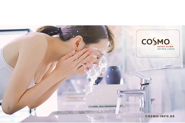 Besonders nachgefragt ist die Kombination eines Cosmo-Frischwassermoduls mit einer Wärmepumpe. Der Vorteil: hygienische Trink-Warmwasseraufbereitung schon bei den niedrigen Temperaturen einer Wärmepumpe und damit einhergehender Energieeinsparung. Darüber hinaus wirkt diese Lösung der Verkeimung und Legionellenbildung entgegen, wird das Trinkwasser doch erst erwärmt, wenn es benötigt wird. Selbst eine Wellness-Dusche ist über diesen Weg möglich. Die Wärmeübertragung im Cosmo-Frischwassermodul ist so effizient, dass selbst das Zusammenspiel mit einer großen Kopfbrause einwandfrei funktioniert. Das Frischwassermodul bildet zusammen mit einer Cosmo-Fußbodenheizung eine effiziente Lösung zum Heizen und zur Trink-Warmwassererwärmung in Verbindung mit einer Wärmepumpe.