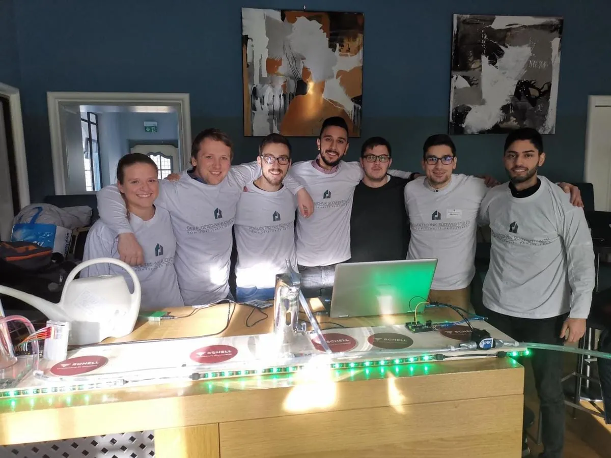 Schell suchte mit Hilfe der Studierenden Alternativen zur Grauwasser-Vorbeugung in Rohrleitungen. Mit Hilfe von preisgünstigen Volumenstrom-Sensoren ermittelten sie hier, ob die einzelnen Bereiche einer Anlage ausreichend gespült wurden und informierten via App bei Bedarf den Hausmeister, um dies manuell zu tun. Die erforderliche Spüldauer wurde dabei ebenfalls in Echtzeit angezeigt. Diese Lösung hat den Vorteil, dass sie für konventionelle Armaturen einfach nachgerüstet werden kann und die Spülvorgänge nur so lange gestaltet wie nötig, ohne Wasser zu verschwenden. Sie überzeuge die Jury vor allem durch ihre anwenderfreundliche App, die die Bedienung des Systems ganz einfach macht und dem Team den zweiten Platz einbrachte.