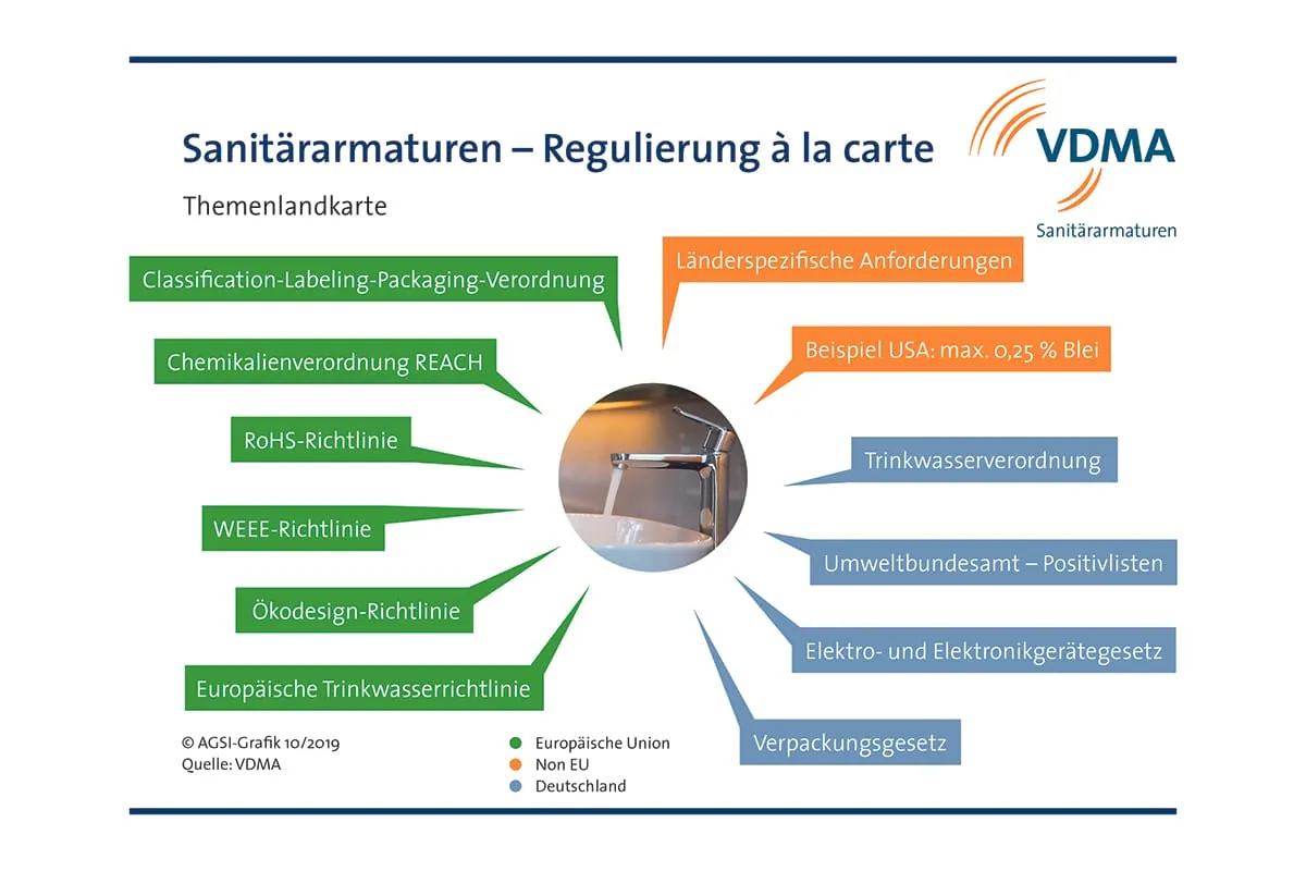 Die Anforderungen an die Sanitärarmaturen im Spannungsfeld zwischen europäischen und nationalen technischen Vorgaben werden immer aufwendiger, undurchschaubarer und finanziell unkalkulierbarer. Dies konstatierte die Arbeitsgemeinschaft Sanitärarmaturenindustrie (AGSI) im Rahmen ihrer jährlichen Pressekonferenz in Frankfurt a. M. am 30. Oktober 2019.