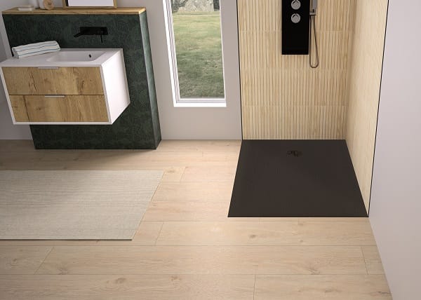 Die Modelle sind in zwei Materialien erhältlich: aus Mineralverbundwerkstoff Biolex oder aus wärme- und schallgedämmtem Acryl. Beide Varianten sind zuschneidbar und können an die Gegebenheiten im Bad angepasst werden. Dies ist insbesondere bei der Renovierung von Vorteil, da Größe und Form der Duschwanne bereits vorgegeben sind. Auch im Neubau können auf diese Weise individuelle Grundrisse realisiert werden.