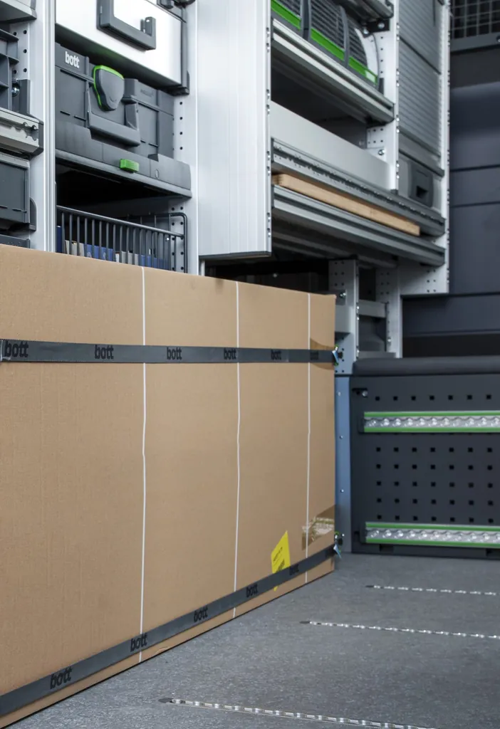 bott konfiguriert die Fahrzeugeinrichtung individuell nach Bedarf. Bei der Planung legten die Entwickler besonderen Wert auf ihre lange Haltbarkeit und ihre Strapazierfähigkeit. Ebenso wie auf die Sicherheit im Straßenverkehr – sei es für den Fahrer, andere Verkehrsteilnehmer oder die Fracht. Sämtliche Crashtests absolvierte die bott vario3 Fahrzeugeinrichtung mit Bravour. Die bott vario3 Fahrzeugeinrichtung organisiert den Stauraum optimal. Die Systemmaße bieten enorm viel Variabilität bei der Organisation des Equipments. Individuelle Lösungen sind die besondere Stärke von bott.