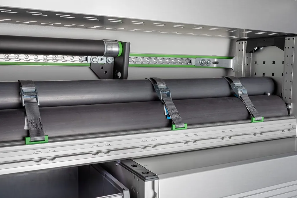bott bietet zahlreiche praktische Lösungen an, um Arbeitsmaterial im Laderaum zu sichern. Für sämtliches Werkzeug und Material gibt es eine große Auswahl an Hilfsmitteln für die Ladungssicherung. Mit Spannstangen lassen sich sperrige Gegenstände im Transporter einfach und schnell fixieren. Oder mit Spanngurten an den zahlreichen Zurrschienen, die an der bott vario3 Fahrzeugeinrichtung integriert sind. Sowohl an den vertikalen als auch an den horizontalen Profilen befinden sich flexible Möglichkeiten für das Befestigen von Spanngurten.