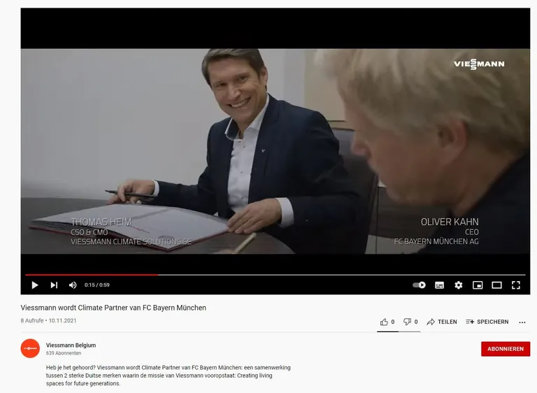 Als offizieller Klimapartner sorgt Viessmann nicht nur beim Rekordverein selbst für die klimafreundliche und nachhaltige Ausstattung des Vereins mit Heiz-, Kühl- und Lüftungslösungen, sondern möchte alle Fußball- und Sportbegeisterten für die vielseitigen Möglichkeiten zur Einsparung von CO2 durch Klimalösungen von Viessmann motivieren. Für beide Seiten bedeutet dieses Engagement deshalb gelebte Verantwortung.