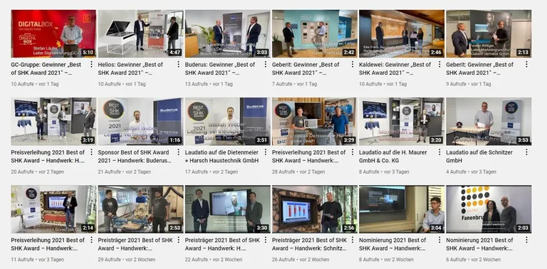 Die Filme zu den Gewinnerkonzepten der SHK-Handwerksunternehmen, zu den Laudationes und Sponsorenstimmen wie auch alle Filme zu den jeweiligen Preisverleihungen vor Ort haben wir für Sie auf dem YouTube-Kanal der Si unter „Redaktion Si“ zusammengefasst.