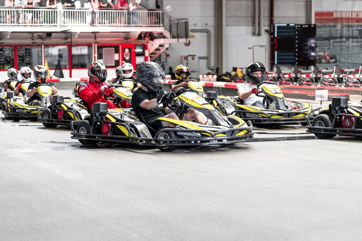 Für die Kart Challenge konnten die SHK-Betriebe rennsportbegeisterte Mitarbeiter mit Benzin im Blut anmelden und mit ihnen mitfiebern. Zum großen Finale in Kerpen waren neben den Teilnehmern auch Angehörige und Freunde mitgereist, um die Finalisten entlang der Rennbahn anzufeuern.