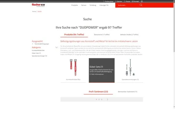 Der Befestigungsspezialist Fischer hat eine neue Anlaufstelle für Heim- und Handwerker im Internet geschaffen. Darüber hinaus werden alle informiert, die sich für die Unternehmensgruppe interessieren. Beide Webseiten überzeugen durch ihre übersichtliche und einheitliche Gestaltung, die eine schnellere Nutzung ermöglichen. Das moderne, Responsive Design, welches die Darstellung der Webseite an die Bildschirmgröße anpasst, ermöglicht ein optimales Nutzererlebnis auf Desktop,Tablet und Smartphone. Durch die prominent platzierte und intelligente Suche findet jeder Anwender schnell die richtige Lösung.